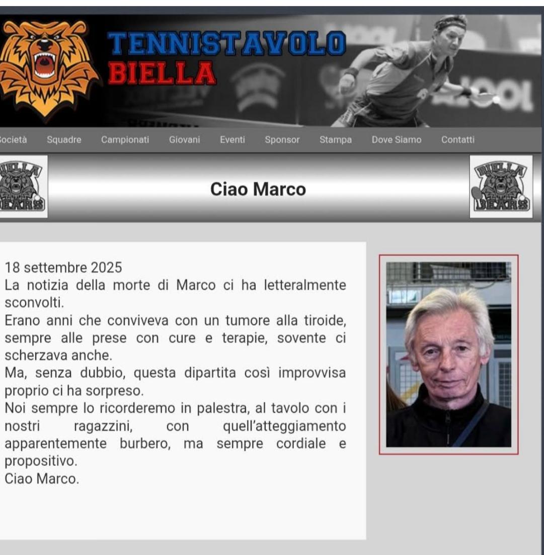 E' mancato Marco Ruffanello da sempre nel tennistavolo piemontese e in particolare del biellese.